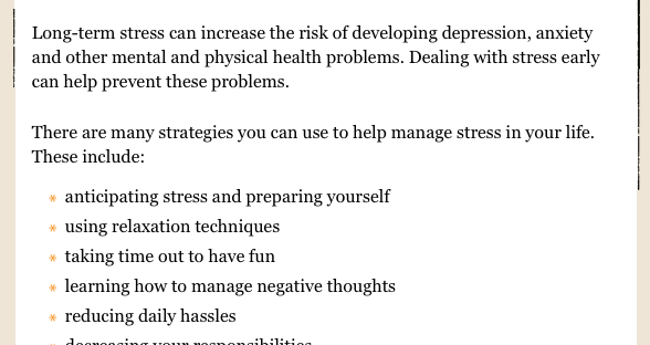 Stressed? November 14, 2017November 6, 2017 Stressed? Check-out one of the great resources from mindcheck.ca. Resources include tips for managing stress: Share this: Click to share on X (Opens in new window) X Click to share on Facebook (Opens in new window) Facebook Like Loading...